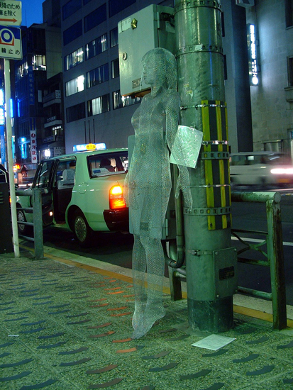 エトリケンジが生身の人体にスチールネットをあてながら型取した人型の作品。2010年3月4日(木)から 30日(水)まで京都府京都市のBAMI galleryで開催されている彼の個展「VANISHING」より。